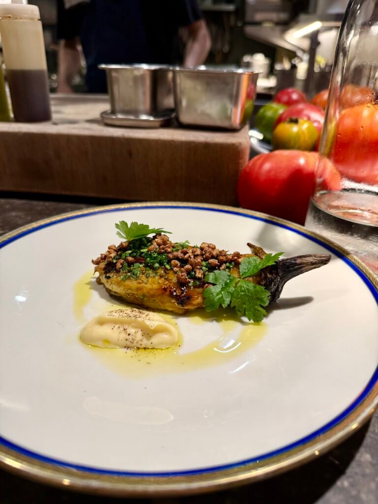 La barra es de esas en las que te quedas embobado ya que la coreografía del equipo es impresionante. La experiencia nos ha gustado mucho más en barra, te recomendamos reservar en ella. Por otro lado, la carta de vinos es estupenda, contando con unos precios maravillosos.