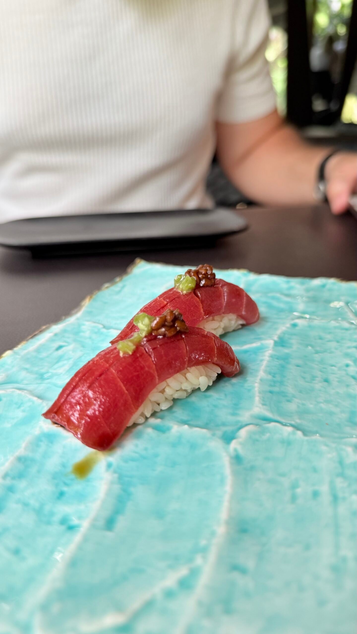 - Nigiri Akami con kizami wasabi y shoyu-Koji