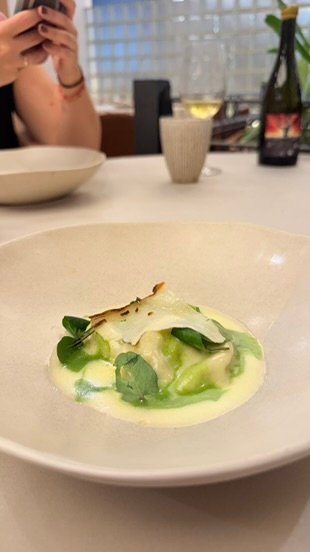 - Ravioli de ricotta y berros con mantequilla emulsionada